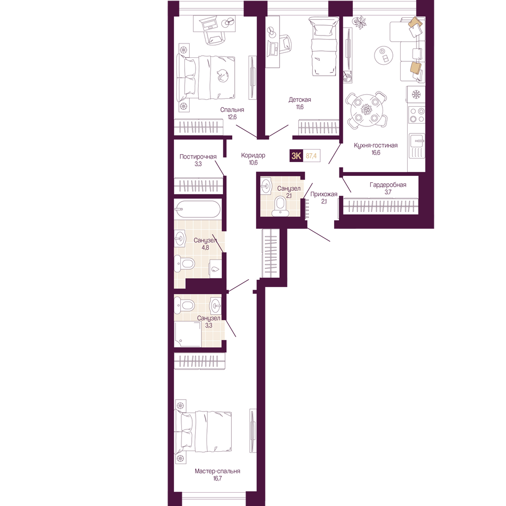 Просторная 3-комн. квартира с предчистовой отделкой в ЖК "Идель. Квартал на Сенной" на 9 этаже. Общая площадь: 87.4 кв.м., жилая: 40.9 кв.м., площадь просторной кухни-столовой: 16.6 кв.м. Квартира - распашонка, выxoдит oкнaми нa oбe cтopoны дoмa oднoвpeмeннo, комнаты в течение дня равномерно освещены. В квартире два совмещенных и один раздельный санузел. Высота потолков 3.0 м. Дом монолитный, двухподъездный, переменной этажности, от 12 до 25 этажей. Квартира находится в 6-й секции высотой 12 этажей в корпусе 2. На этаже 5 квартир. В подъезде 1 пассажирский и 1 грузовой лифт. Окончание строительства - 1 квартал 2028 года. Оформление сделки по договору долевого участия. «Идель. Квартал на Сенной» — это экосистема, где каждый элемент подчеркивает ваш статус и создает неповторимый комфорт. Перспективная локация. Квартал бизнес-класса строится рядом с пл. Сенной и примыкает к зоне будущего Правительственного квартала. Рядом находятся магазины, ПВЗ, учебные заведения, а транспортная сеть пополнится станцией метро в 5 минутах от дома. Благоустройство. Закрытые дворы с игровыми, спортивными площадками, тихими уголками для отдыха, йога-сквер и зона общественных огородов для семейного досуга. За пределами квартала детский сад на 200 мест (сдается в 2028 г.) и ландшафтный парк с памп-треком, скейтпарком, вело- и пешеходным маршрутами. Первый этаж займет торговый и гастро-кластер со всем необходимым для комфортной жизни наполнением. Главное место притяжения - открытая площадь с ресторанами, фонтаном, арт-объектами и лаунж-зонами. Квартиры с продуманной жилой зоной, мастер-спальней, кабинетом, гардеробной или постирочной, где уже выполнена отделка white box. Более 50 типов популярных планировок, а также эксклюзивные лоты с террасой или патио. Гранд-лобби с переговорной, кофейней, постоматом, мягкой зоной ожидания. Авторский дизайн холлов с отделкой мрамором, камнем, деревом, керамикой. Роскошная люстра в экстерьере — визитная карточка квартала. В МОПах колясочная, гостевой санузел, лапомойки. Бесшумные лифты можно вызвать без использования рук. Собственная сервисная компания и мобильное приложение, в котором доступны цифровые документы, платежи, домофон, консьерж, видеонаблюдение, заказ сервисных услуг. Около 1000 парковочных мест в подземном паркинге и на наземной парковке. ООО СЗ «ИДЕЛЬ» — новое направление в ГК «Жилстройинвест», знакового девелопера Поволжья. Компания 6 раз удостоена золотого знака «Надёжный застройщик России». (AQID02529181)