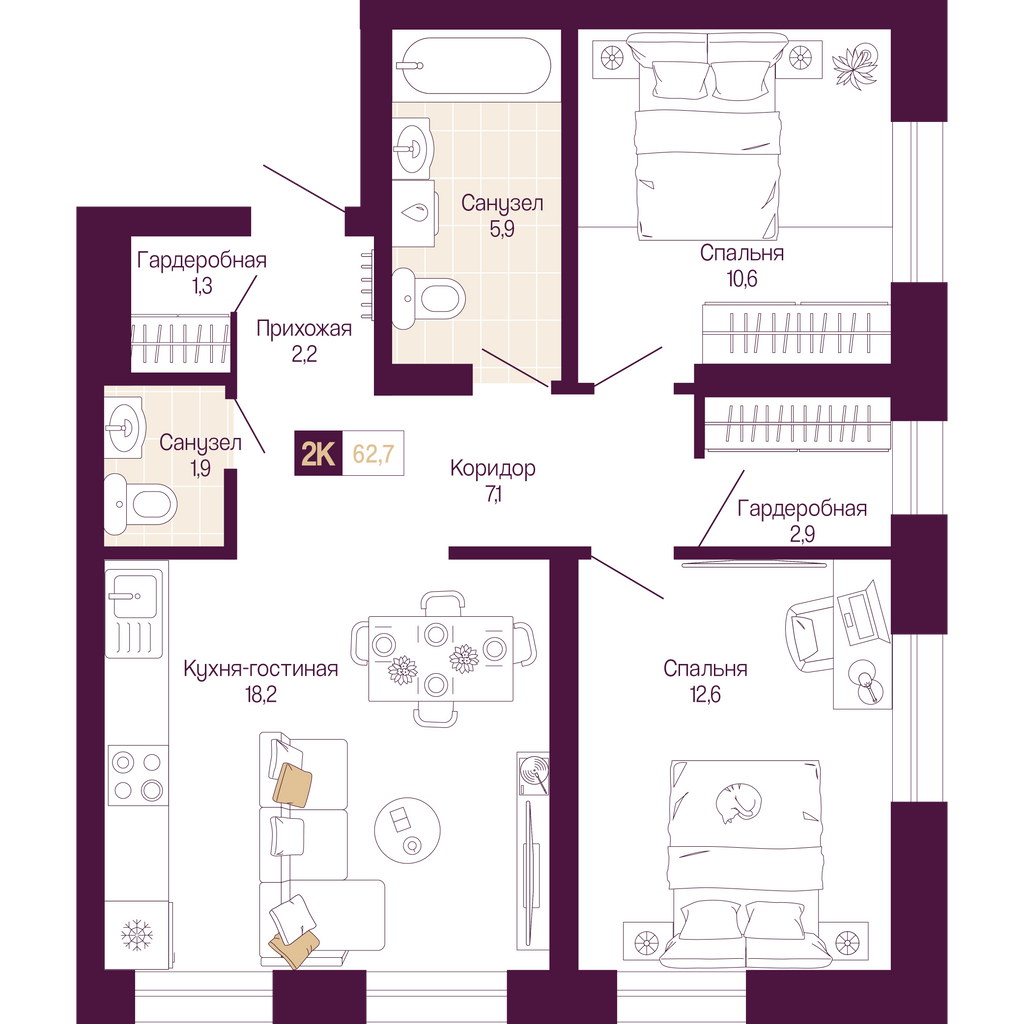 2-комн. квартира с предчистовой отделкой в ЖК "Идель. Квартал на Сенной" на 2 этаже. Общая площадь: 62.7 кв.м., жилая: 23.2 кв.м., площадь просторной кухни-столовой: 18.2 кв.м. Угловая квартира, окна oбecпeчивaют paвнoмepнoe ocвeщeниe в тeчeниe дня. В квартире один совмещенный и один раздельный санузел. Высота потолков 3.0 м. Дом монолитный, двухподъездный, переменной этажности, от 12 до 25 этажей. Квартира находится в 6-й секции высотой 12 этажей в корпусе 2. На этаже 5 квартир. В подъезде 1 пассажирский и 1 грузовой лифт. Окончание строительства - 1 квартал 2028 года. Оформление сделки по договору долевого участия. «Идель. Квартал на Сенной» — это экосистема, где каждый элемент подчеркивает ваш статус и создает неповторимый комфорт. Перспективная локация. Квартал бизнес-класса строится рядом с пл. Сенной и примыкает к зоне будущего Правительственного квартала. Рядом находятся магазины, ПВЗ, учебные заведения, а транспортная сеть пополнится станцией метро в 5 минутах от дома. Благоустройство. Закрытые дворы с игровыми, спортивными площадками, тихими уголками для отдыха, йога-сквер и зона общественных огородов для семейного досуга. За пределами квартала детский сад на 200 мест (сдается в 2028 г.) и ландшафтный парк с памп-треком, скейтпарком, вело- и пешеходным маршрутами. Первый этаж займет торговый и гастро-кластер со всем необходимым для комфортной жизни наполнением. Главное место притяжения - открытая площадь с ресторанами, фонтаном, арт-объектами и лаунж-зонами. Квартиры с продуманной жилой зоной, мастер-спальней, кабинетом, гардеробной или постирочной, где уже выполнена отделка white box. Более 50 типов популярных планировок, а также эксклюзивные лоты с террасой или патио. Гранд-лобби с переговорной, кофейней, постоматом, мягкой зоной ожидания. Авторский дизайн холлов с отделкой мрамором, камнем, деревом, керамикой. Роскошная люстра в экстерьере — визитная карточка квартала. В МОПах колясочная, гостевой санузел, лапомойки. Бесшумные лифты можно вызвать без использования рук. Собственная сервисная компания и мобильное приложение, в котором доступны цифровые документы, платежи, домофон, консьерж, видеонаблюдение, заказ сервисных услуг. Около 1000 парковочных мест в подземном паркинге и на наземной парковке. ООО СЗ «ИДЕЛЬ» — новое направление в ГК «Жилстройинвест», знакового девелопера Поволжья. Компания 6 раз удостоена золотого знака «Надёжный застройщик России». (AQID02529161)