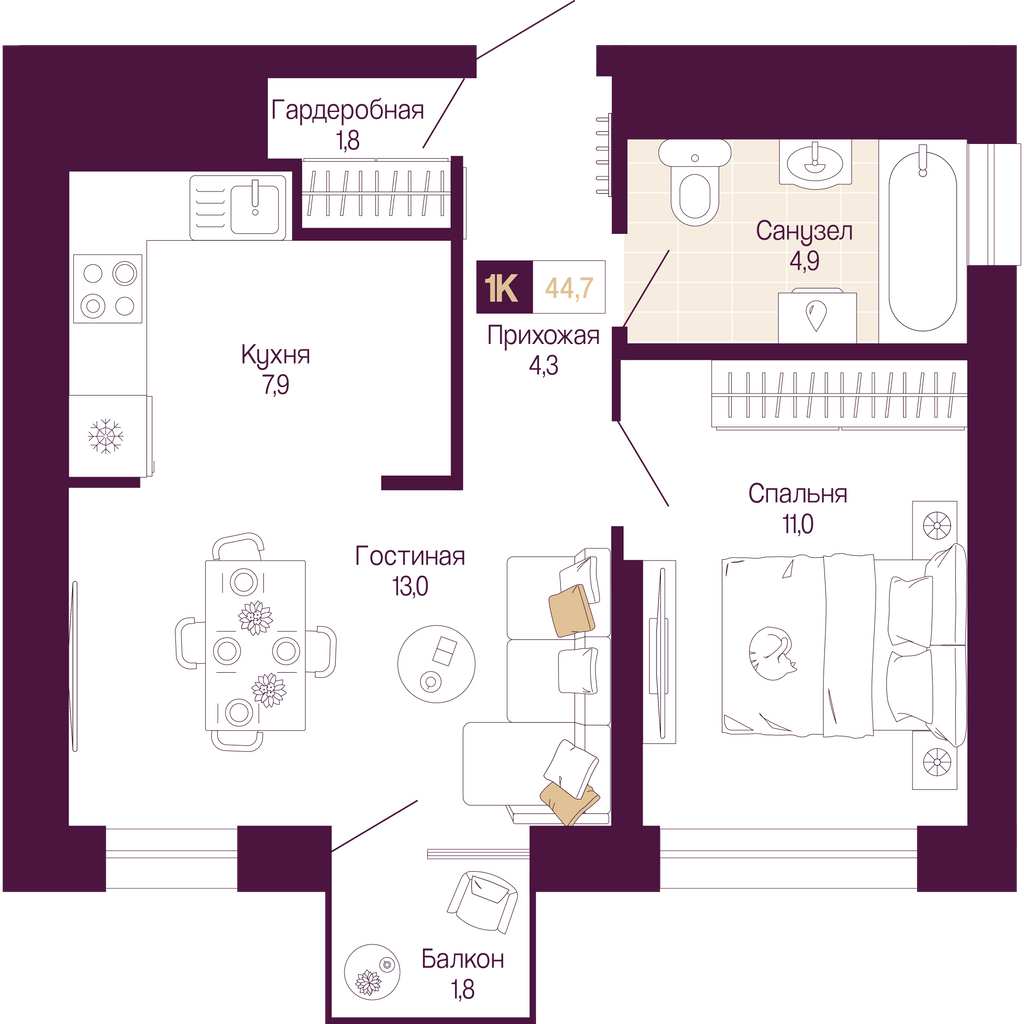 43 м2,