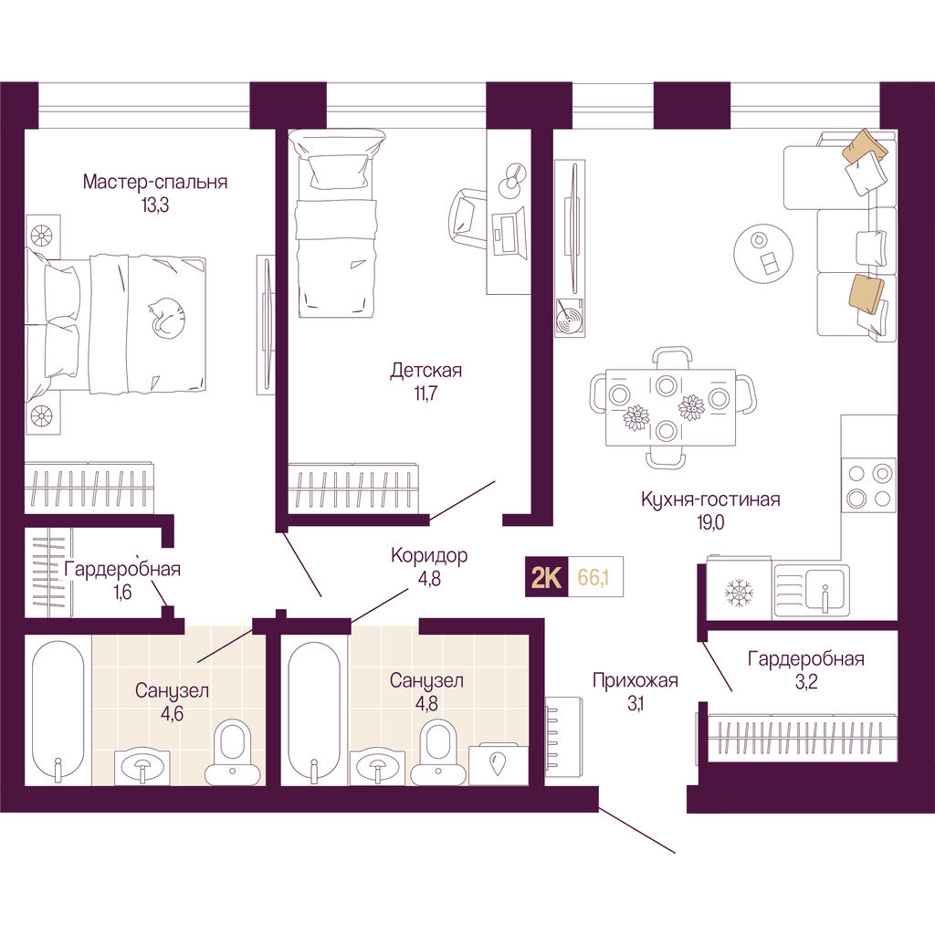Продается двухкомнатная квартира с предчистовой отделкой в ЖК "Идель. Квартал на Сенной" на 7 этаже. Общая площадь: 66.1 кв.м., жилая: 25 кв.м., площадь просторной кухни-столовой: 19 кв.м. Комнаты изолированные, все окна выходят на одну сторону. В квартире два совмещенных санузла. Высота потолков 3.0 м. Дом монолитный, двухподъездный, переменной этажности, от 12 до 25 этажей. Квартира находится в 5-й секции высотой 25 этажей в корпусе 2. На этаже 7 квартир. В подъезде 2 пассажирских и 1 грузовой лифт. Окончание строительства - 1 квартал 2028 года. Оформление сделки по договору долевого участия. «Идель. Квартал на Сенной» — это экосистема, где каждый элемент подчеркивает ваш статус и создает неповторимый комфорт. Перспективная локация. Квартал бизнес-класса строится рядом с пл. Сенной и примыкает к зоне будущего Правительственного квартала. Рядом находятся магазины, ПВЗ, учебные заведения, а транспортная сеть пополнится станцией метро в 5 минутах от дома. Благоустройство. Закрытые дворы с игровыми, спортивными площадками, тихими уголками для отдыха, йога-сквер и зона общественных огородов для семейного досуга. За пределами квартала детский сад на 200 мест (сдается в 2028 г.) и ландшафтный парк с памп-треком, скейтпарком, вело- и пешеходным маршрутами. Первый этаж займет торговый и гастро-кластер со всем необходимым для комфортной жизни наполнением. Главное место притяжения - открытая площадь с ресторанами, фонтаном, арт-объектами и лаунж-зонами. Квартиры с продуманной жилой зоной, мастер-спальней, кабинетом, гардеробной или постирочной, где уже выполнена отделка white box. Более 50 типов популярных планировок, а также эксклюзивные лоты с террасой или патио. Гранд-лобби с переговорной, кофейней, постоматом, мягкой зоной ожидания. Авторский дизайн холлов с отделкой мрамором, камнем, деревом, керамикой. Роскошная люстра в экстерьере — визитная карточка квартала. В МОПах колясочная, гостевой санузел, лапомойки. Бесшумные лифты можно вызвать без использования рук. Собственная сервисная компания и мобильное приложение, в котором доступны цифровые документы, платежи, домофон, консьерж, видеонаблюдение, заказ сервисных услуг. Около 1000 парковочных мест в подземном паркинге и на наземной парковке. ООО СЗ «ИДЕЛЬ» — новое направление в ГК «Жилстройинвест», знакового девелопера Поволжья. Компания 6 раз удостоена золотого знака «Надёжный застройщик России». (AQID02529140)