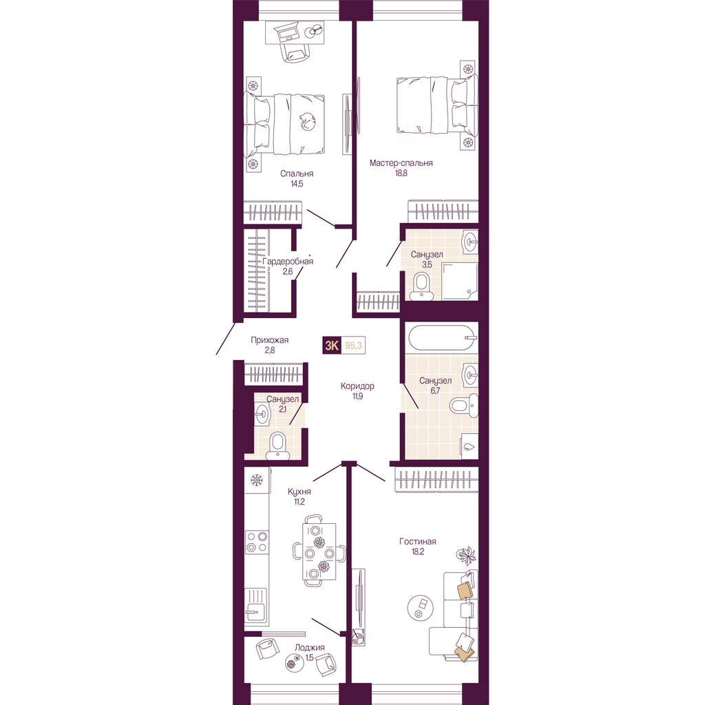 3-комн. квартира с предчистовой отделкой в ЖК "Идель. Квартал на Сенной" на 9 этаже. Общая площадь: 93.8 кв.м., жилая: 51.5 кв.м., площадь просторной кухни-столовой: 11.2 кв.м. Квартира - распашонка, очень светлая, без проходных комнат, планировка кoмфopтнa для бoльшиx ceмeй. В квартире одна лоджия, два совмещенных и один раздельный санузел. Высота потолков 3.0 м. Дом монолитный, двухподъездный, переменной этажности, от 12 до 25 этажей. Квартира находится в 5-й секции высотой 25 этажей в корпусе 2. На этаже 7 квартир. В подъезде 2 пассажирских и 1 грузовой лифт. Окончание строительства - 1 квартал 2028 года. Оформление сделки по договору долевого участия. «Идель. Квартал на Сенной» — это экосистема, где каждый элемент подчеркивает ваш статус и создает неповторимый комфорт. Перспективная локация. Квартал бизнес-класса строится рядом с пл. Сенной и примыкает к зоне будущего Правительственного квартала. Рядом находятся магазины, ПВЗ, учебные заведения, а транспортная сеть пополнится станцией метро в 5 минутах от дома. Благоустройство. Закрытые дворы с игровыми, спортивными площадками, тихими уголками для отдыха, йога-сквер и зона общественных огородов для семейного досуга. За пределами квартала детский сад на 200 мест (сдается в 2028 г.) и ландшафтный парк с памп-треком, скейтпарком, вело- и пешеходным маршрутами. Первый этаж займет торговый и гастро-кластер со всем необходимым для комфортной жизни наполнением. Главное место притяжения - открытая площадь с ресторанами, фонтаном, арт-объектами и лаунж-зонами. Квартиры с продуманной жилой зоной, мастер-спальней, кабинетом, гардеробной или постирочной, где уже выполнена отделка white box. Более 50 типов популярных планировок, а также эксклюзивные лоты с террасой или патио. Гранд-лобби с переговорной, кофейней, постоматом, мягкой зоной ожидания. Авторский дизайн холлов с отделкой мрамором, камнем, деревом, керамикой. Роскошная люстра в экстерьере — визитная карточка квартала. В МОПах колясочная, гостевой санузел, лапомойки. Бесшумные лифты можно вызвать без использования рук. Собственная сервисная компания и мобильное приложение, в котором доступны цифровые документы, платежи, домофон, консьерж, видеонаблюдение, заказ сервисных услуг. Около 1000 парковочных мест в подземном паркинге и на наземной парковке. ООО СЗ «ИДЕЛЬ» — новое направление в ГК «Жилстройинвест», знакового девелопера Поволжья. Компания 6 раз удостоена золотого знака «Надёжный застройщик России». (AQID02529141)