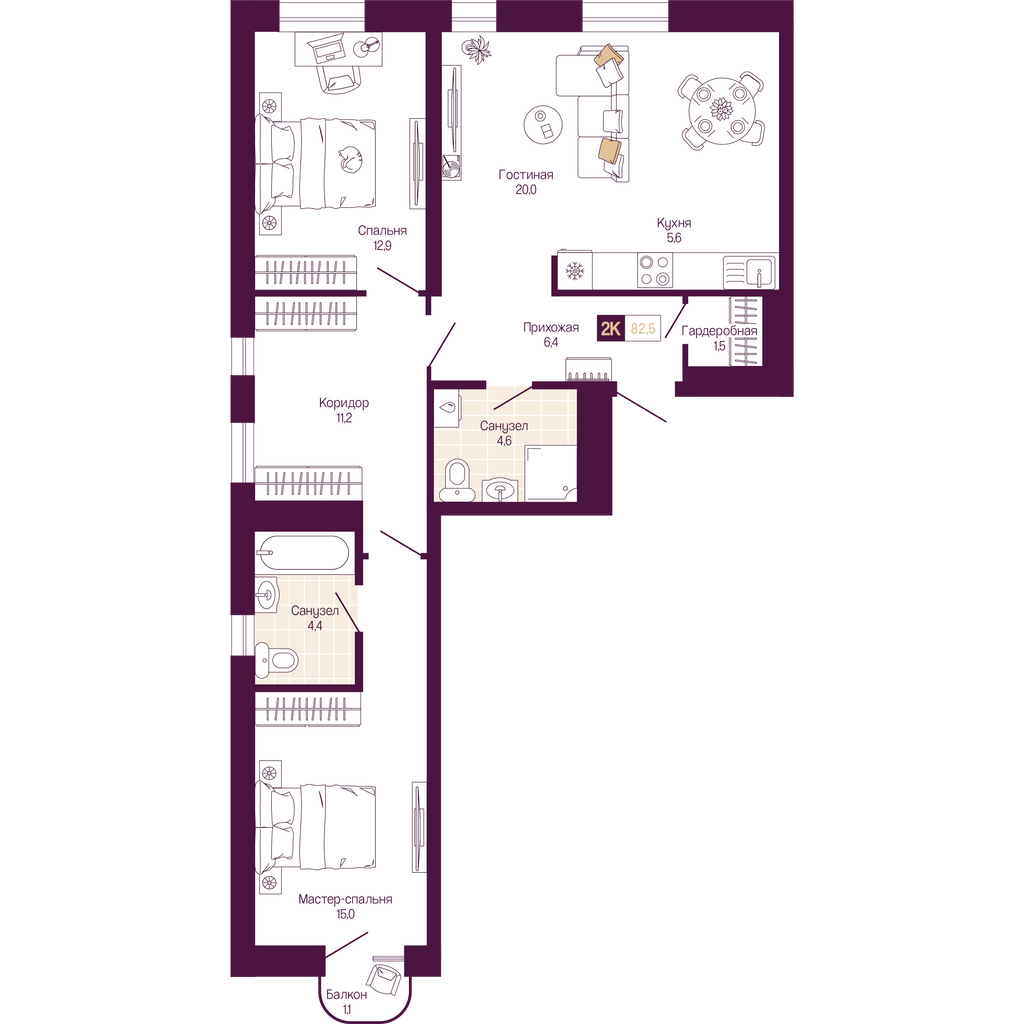 82 м2,