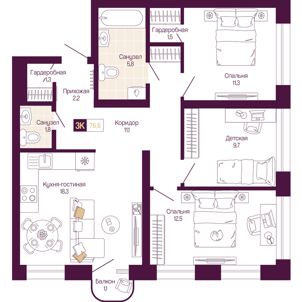 Продается 3-комн. квартира с предчистовой отделкой в ЖК "Идель. Квартал на Сенной" на 9 этаже. Общая площадь: 75.8 кв.м., жилая: 33.5 кв.м., площадь просторной кухни-столовой: 18.3 кв.м. Угловая квартира, идеально подойдет любителям тишины и панорамных видов. В квартире один балкон, один совмещенный и один раздельный санузел. Высота потолков 3.0 м. Дом монолитный, двухподъездный, переменной этажности, от 12 до 25 этажей. Квартира находится в 6-й секции высотой 12 этажей в корпусе 2. На этаже 5 квартир. В подъезде 1 пассажирский и 1 грузовой лифт. Окончание строительства - 1 квартал 2028 года. Оформление сделки по договору долевого участия. «Идель. Квартал на Сенной» — это экосистема, где каждый элемент подчеркивает ваш статус и создает неповторимый комфорт. Перспективная локация. Квартал бизнес-класса строится рядом с пл. Сенной и примыкает к зоне будущего Правительственного квартала. Рядом находятся магазины, ПВЗ, учебные заведения, а транспортная сеть пополнится станцией метро в 5 минутах от дома. Благоустройство. Закрытые дворы с игровыми, спортивными площадками, тихими уголками для отдыха, йога-сквер и зона общественных огородов для семейного досуга. За пределами квартала детский сад на 200 мест (сдается в 2028 г.) и ландшафтный парк с памп-треком, скейтпарком, вело- и пешеходным маршрутами. Первый этаж займет торговый и гастро-кластер со всем необходимым для комфортной жизни наполнением. Главное место притяжения - открытая площадь с ресторанами, фонтаном, арт-объектами и лаунж-зонами. Квартиры с продуманной жилой зоной, мастер-спальней, кабинетом, гардеробной или постирочной, где уже выполнена отделка white box. Более 50 типов популярных планировок, а также эксклюзивные лоты с террасой или патио. Гранд-лобби с переговорной, кофейней, постоматом, мягкой зоной ожидания. Авторский дизайн холлов с отделкой мрамором, камнем, деревом, керамикой. Роскошная люстра в экстерьере — визитная карточка квартала. В МОПах колясочная, гостевой санузел, лапомойки. Бесшумные лифты можно вызвать без использования рук. Собственная сервисная компания и мобильное приложение, в котором доступны цифровые документы, платежи, домофон, консьерж, видеонаблюдение, заказ сервисных услуг. Около 1000 парковочных мест в подземном паркинге и на наземной парковке. ООО СЗ «ИДЕЛЬ» — новое направление в ГК «Жилстройинвест», знакового девелопера Поволжья. Компания 6 раз удостоена золотого знака «Надёжный застройщик России». (AQID02529179)