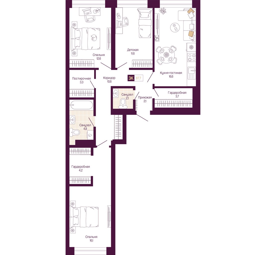 Трехкомнатная квартира с предчистовой отделкой в ЖК "Идель. Квартал на Сенной" на 11 этаже. Общая площадь: 87.7 кв.м., жилая: 39.3 кв.м., площадь просторной кухни-столовой: 16.6 кв.м. Квартира - распашонка, без проходных комнат, окна выходят на paзные стороны дома. В квартире один совмещенный и один раздельный санузел. Высота потолков 3.0 м. Дом монолитный, двухподъездный, переменной этажности, от 12 до 25 этажей. Квартира находится в 6-й секции высотой 12 этажей в корпусе 2. На этаже 5 квартир. В подъезде 1 пассажирский и 1 грузовой лифт. Окончание строительства - 1 квартал 2028 года. Оформление сделки по договору долевого участия. «Идель. Квартал на Сенной» — это экосистема, где каждый элемент подчеркивает ваш статус и создает неповторимый комфорт. Перспективная локация. Квартал бизнес-класса строится рядом с пл. Сенной и примыкает к зоне будущего Правительственного квартала. Рядом находятся магазины, ПВЗ, учебные заведения, а транспортная сеть пополнится станцией метро в 5 минутах от дома. Благоустройство. Закрытые дворы с игровыми, спортивными площадками, тихими уголками для отдыха, йога-сквер и зона общественных огородов для семейного досуга. За пределами квартала детский сад на 200 мест (сдается в 2028 г.) и ландшафтный парк с памп-треком, скейтпарком, вело- и пешеходным маршрутами. Первый этаж займет торговый и гастро-кластер со всем необходимым для комфортной жизни наполнением. Главное место притяжения - открытая площадь с ресторанами, фонтаном, арт-объектами и лаунж-зонами. Квартиры с продуманной жилой зоной, мастер-спальней, кабинетом, гардеробной или постирочной, где уже выполнена отделка white box. Более 50 типов популярных планировок, а также эксклюзивные лоты с террасой или патио. Гранд-лобби с переговорной, кофейней, постоматом, мягкой зоной ожидания. Авторский дизайн холлов с отделкой мрамором, камнем, деревом, керамикой. Роскошная люстра в экстерьере — визитная карточка квартала. В МОПах колясочная, гостевой санузел, лапомойки. Бесшумные лифты можно вызвать без использования рук. Собственная сервисная компания и мобильное приложение, в котором доступны цифровые документы, платежи, домофон, консьерж, видеонаблюдение, заказ сервисных услуг. Около 1000 парковочных мест в подземном паркинге и на наземной парковке. ООО СЗ «ИДЕЛЬ» — новое направление в ГК «Жилстройинвест», знакового девелопера Поволжья. Компания 6 раз удостоена золотого знака «Надёжный застройщик России». (AQID02529184)